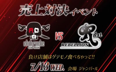 7月13日ロッシュにて 本日もロッシュ1st vs リベリオン1st対決イベントご来店いただき誠にありがとうございます! 本日のNo.1はおいでやす代表です! お…